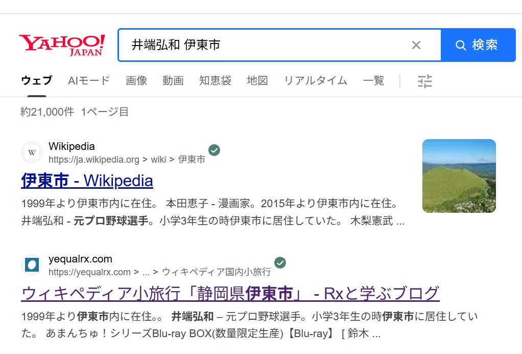 どうやら、昔伊東市に住んでいたことが原因で「井端弘和 伊東市」と検索されているようです。