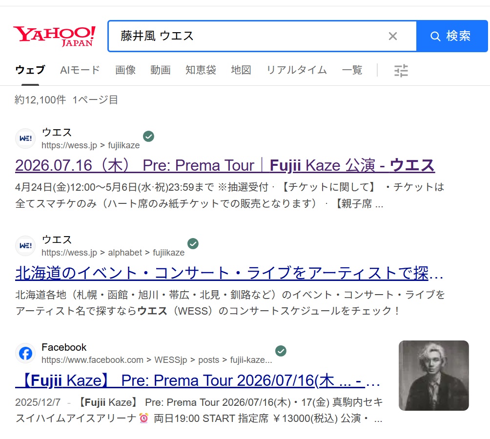 どうやら、「ウエス」という名前のライブチケット販売サイトがあるようですね!