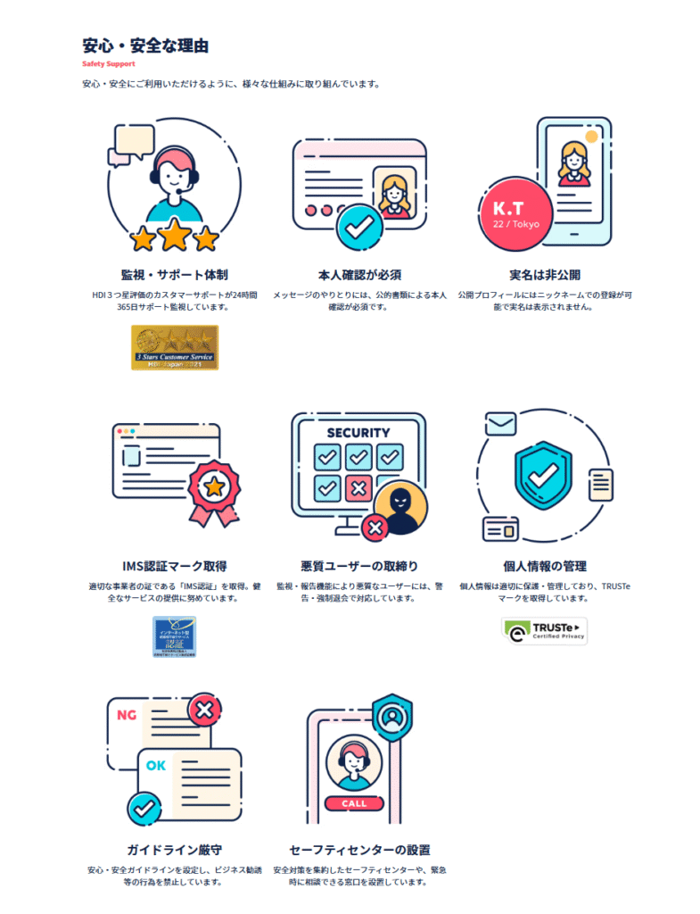 公的書類による本人確認を行うので安心して相手とやりとりができます。