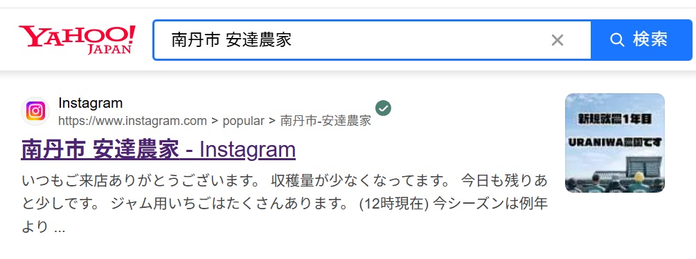 インスタグラムでよく「南丹市 安達農家」と検索されているだけなのか?「南丹市 安達農家」というアカウントが消されてしまったのか?