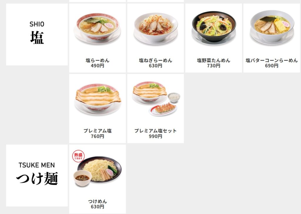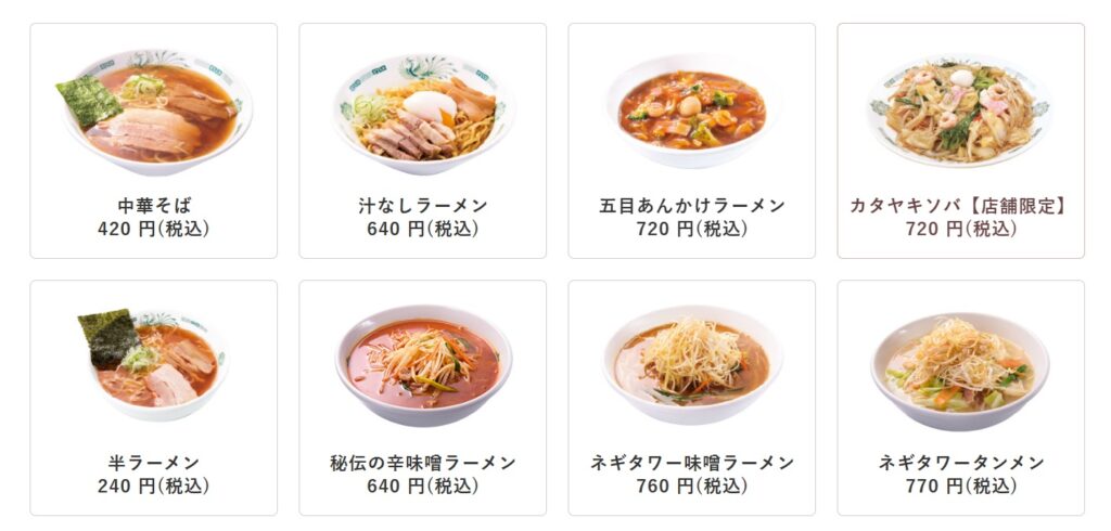 幸楽苑のメニュー
