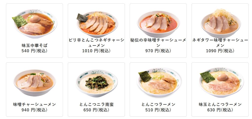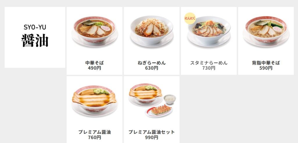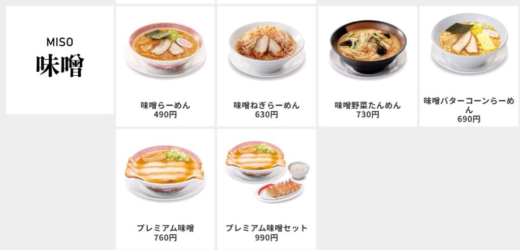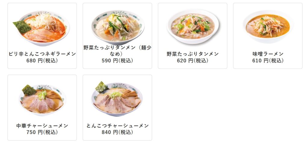 ここではラーメンに絞って比較してみます。